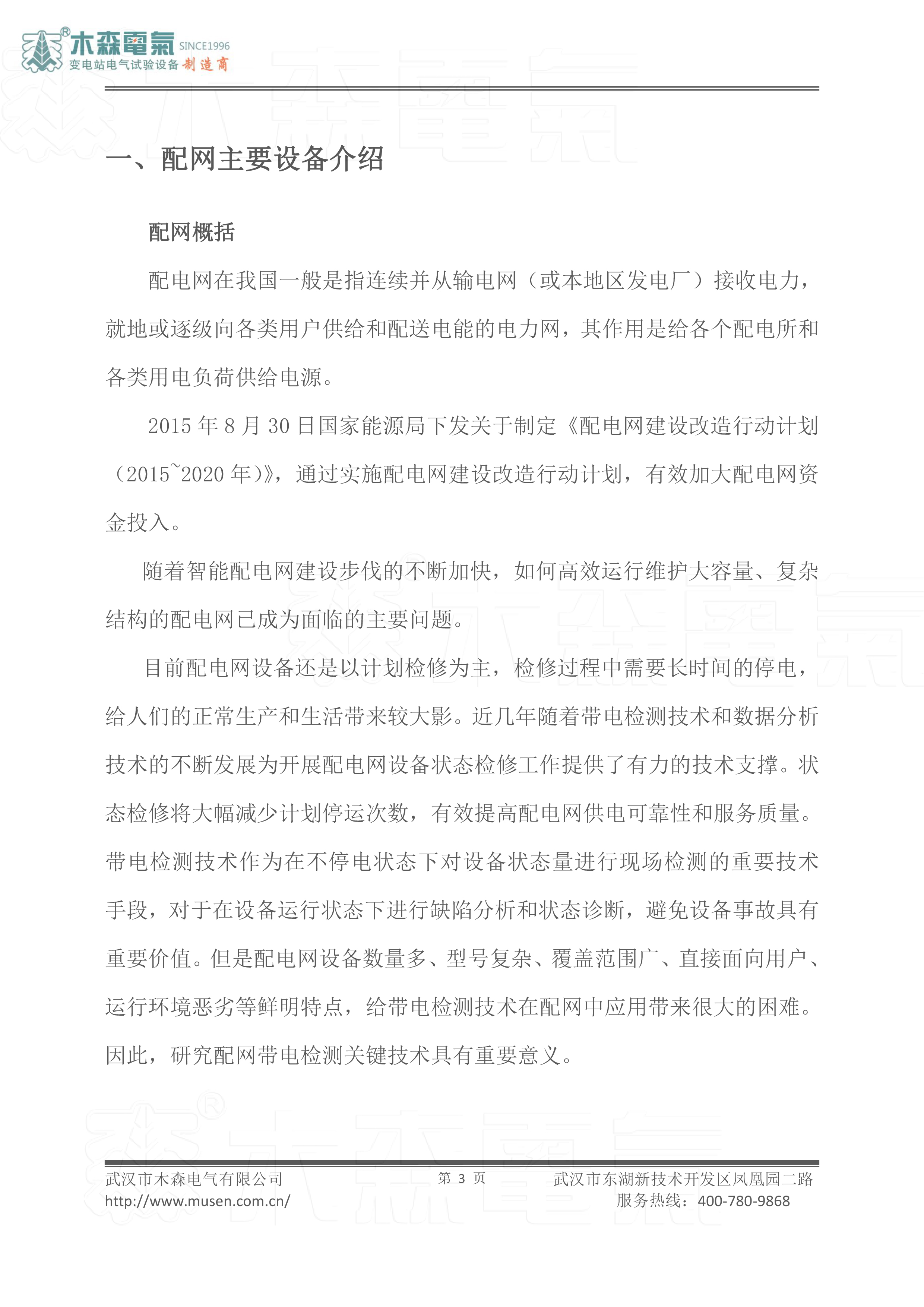 - 一、配網(wǎng)主要設(shè)備介紹配網(wǎng)概括配電網(wǎng)在我國一般是指連續(xù)并從輸電網(wǎng)(或本地區(qū)發(fā)電廠)接收電力,就地或逐級向各類用戶供給和配送電能的電力網(wǎng),其作用是給各個配電所和各類用電負荷供給電源。2015 年 8 月 30 日國家能源局下發(fā)關(guān)于制定《配電網(wǎng)建設(shè)改造行動計劃(2015~2020 年)》,通過實施配電網(wǎng)建設(shè)改造行動計劃,有效加大配電網(wǎng)資金投入。隨著智能配電網(wǎng)建設(shè)步伐的不斷加快,如何高效運行維護大容量、復(fù)雜結(jié)構(gòu)的配電網(wǎng)已成為面臨的主要問題。目前配電網(wǎng)設(shè)備還是以計劃檢修為主,檢修過程中需要長時間的停電,給人們的正常生產(chǎn)和生活帶來較大影。近幾年隨著帶電檢測技術(shù)和數(shù)據(jù)分析技術(shù)的不斷發(fā)展為開展配電網(wǎng)設(shè)備狀態(tài)檢修工作提供了有力的技術(shù)支撐。狀態(tài)檢修將大幅減少計劃停運次數(shù),有效提高配電網(wǎng)供電可靠性和服務(wù)質(zhì)量。帶電檢測技術(shù)作為在不停電狀態(tài)下對設(shè)備狀態(tài)量進行現(xiàn)場檢測的重要技術(shù)手段,對于在設(shè)備運行狀態(tài)下進行缺陷分析和狀態(tài)診斷,避免設(shè)備事故具有重要價值。但是配電網(wǎng)設(shè)備數(shù)量多、型號復(fù)雜、覆蓋范圍廣、直接面向用戶、運行環(huán)境惡劣等鮮明特點,給帶電檢測技術(shù)在配網(wǎng)中應(yīng)用帶來很大的困難。因此,研究配網(wǎng)帶電檢測關(guān)鍵技術(shù)具有重要意義。
