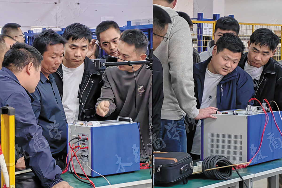 11月12日下午的串聯(lián)諧振課程,廣西學(xué)員們表現(xiàn)出極高的學(xué)習(xí)熱情,正式講解操作之前,講師陳工先對(duì)相關(guān)理論知識(shí)進(jìn)行了詳細(xì)講解,包括R、L、C串聯(lián)電路發(fā)生諧振的條件和諧振時(shí)電路的特性等。隨后,陳工開(kāi)始了現(xiàn)場(chǎng)實(shí)操培訓(xùn),從設(shè)備的接線到參數(shù)設(shè)置,再到試驗(yàn)操作,都進(jìn)行了詳細(xì)的演示和講解。經(jīng)過(guò)一天的共同交流和學(xué)習(xí),對(duì)方完全掌握了串聯(lián)諧振耐壓試驗(yàn)的操作方法,并對(duì)木森的儀器表示了高度滿(mǎn)意。